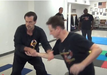 Footwork is a major part of the system. Students work on forward angle stepping, reverse angle stepping, triangle footwork, six-point stepping, hourglass stepping, and other movement patterns that help them get off the line of attack and find better angles.